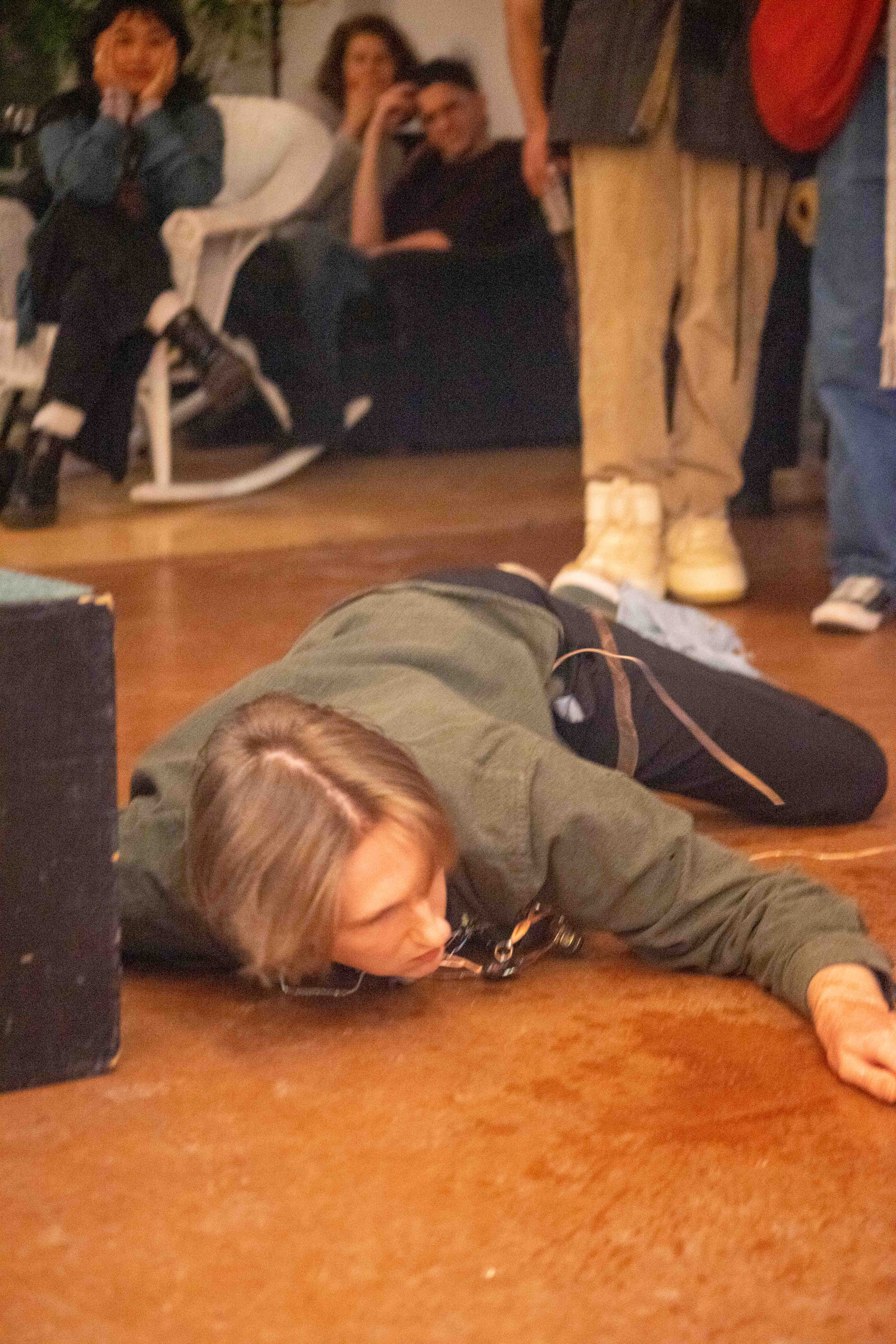 “Cyborg de garage” était une performance, d’un système électronique portable que j’ai confectionné à partir d’objets trouvés et rescapés. Tels que des tuyaux de cuivre, des haut-parleurs de jouets, ainsi que d’éléments de circuits électroniques.